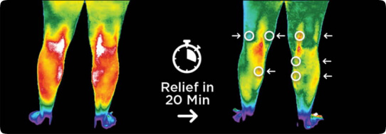 *In the images above you can see how swollen (inflamed) red areas on the body fade to a calm green within 20 minutes of applying a Wellnee Knee Relief Patch..